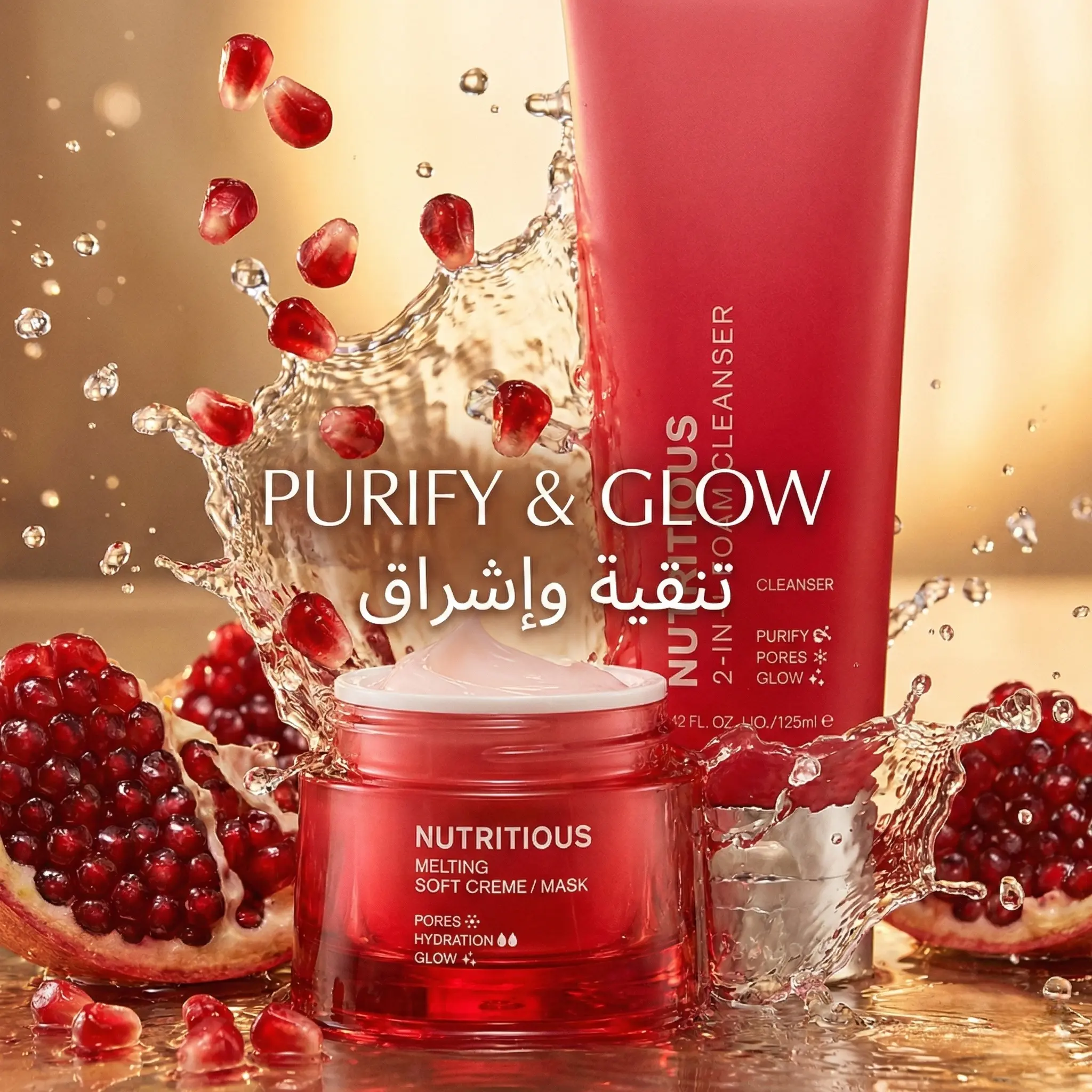 肌肤暗沉疲惫?瞬间唤醒它!这款强效组合能够净化毛孔,并为肌肤注入超级石榴抗氧化成分。只需两步,即可拥有健康红润的肌肤。