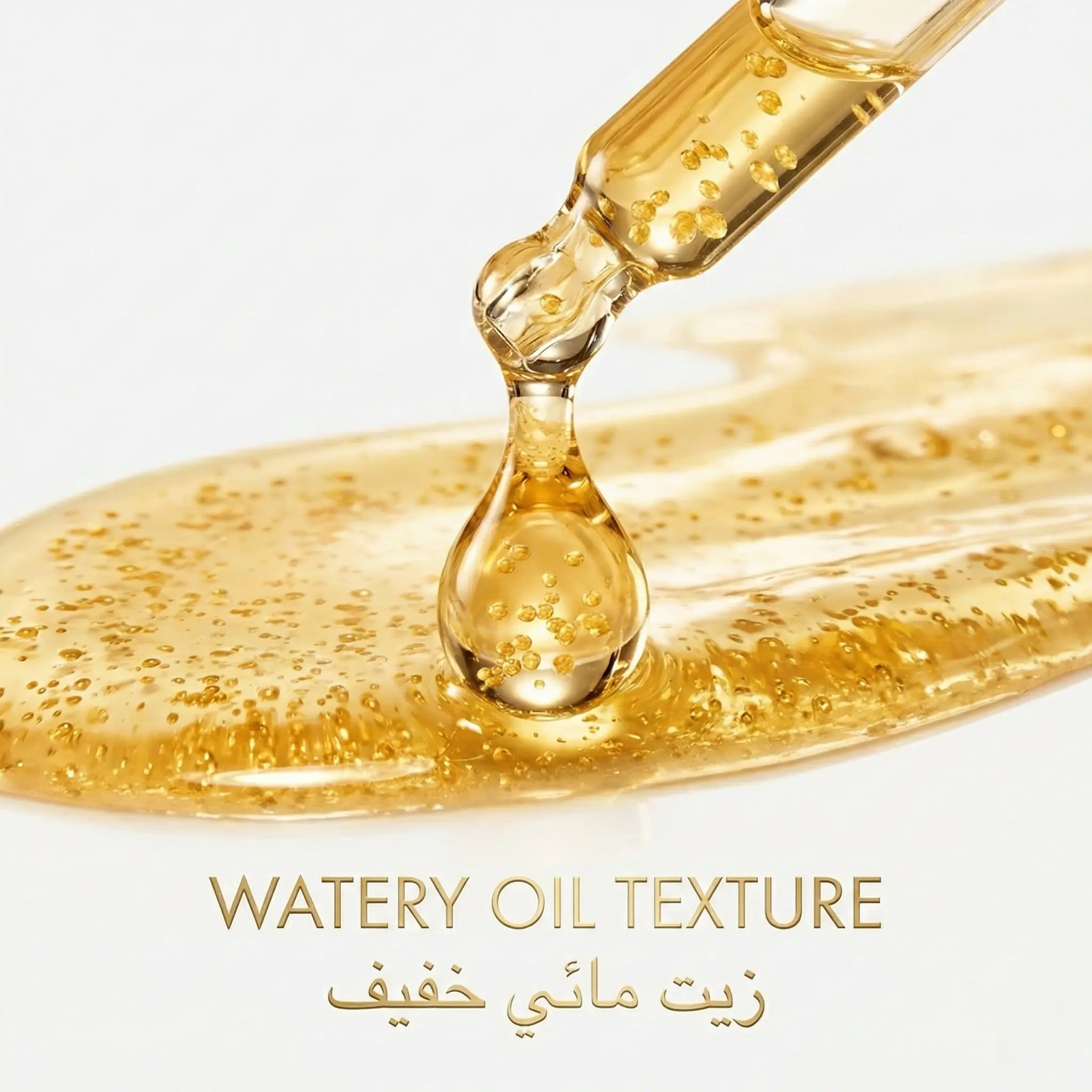 🟡微胶囊油:摇晃瓶子以激活涂抹时会爆裂的金色小珠。