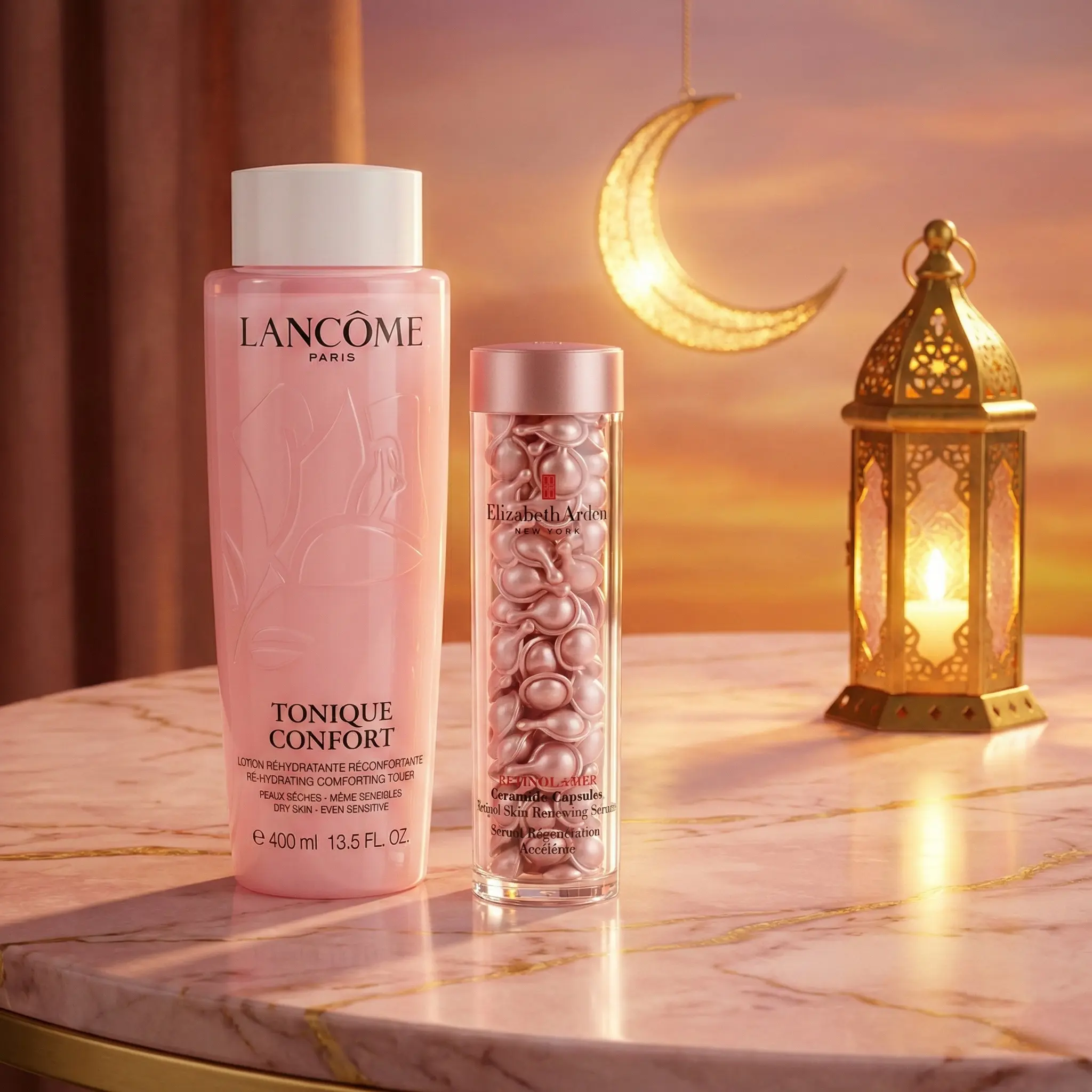 斋月终极护肤方案:在神圣的斋月期间,缺水和睡眠不足是肌肤最大的敌人。我们结合了世界上最好的修护精华和最舒缓的爽肤水,让您从封斋饭到开斋饭都保持容光焕发。